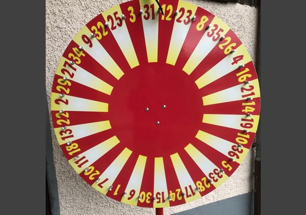 Scheibendurchmesser 90cm 36 Felder. Ideal für Firmenevents, Ausstellungen, Glücksspiele.| Prix de location: | Fr. 200.00 |